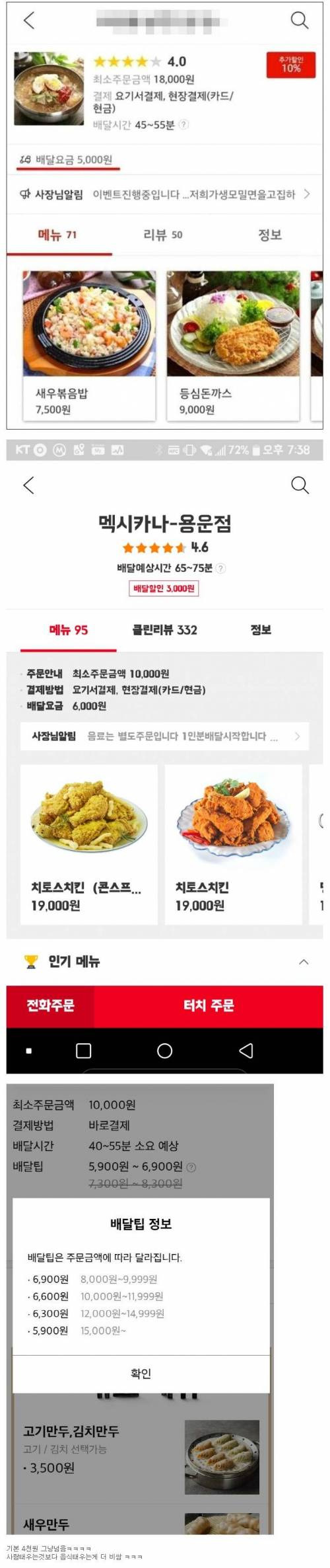 6900...? 안먹고 말지 배달료가 얼마인데 저걸 다 소비자한테 돌리는거냐 열받게
