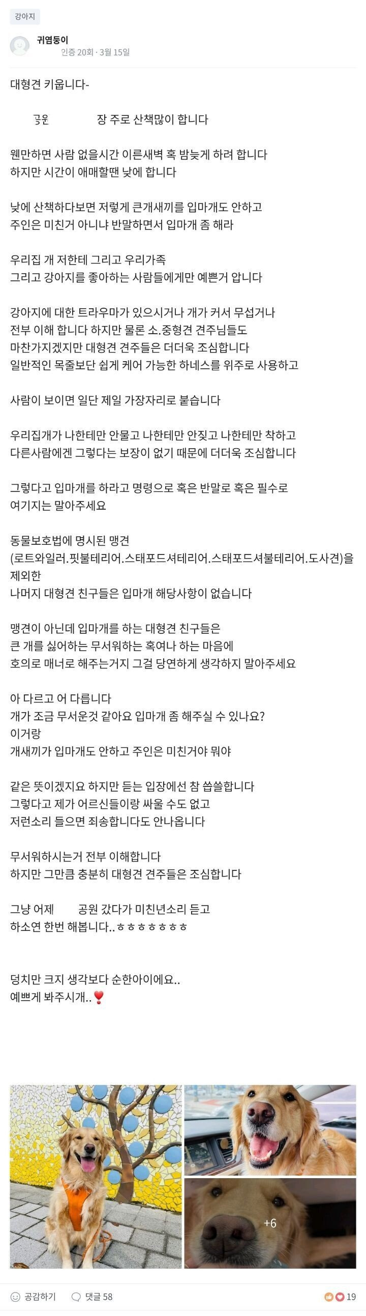 ㅋㅋㅋ그 튀어나가는 대형견 추진력을 여자힘으로 감당 할수있을꺼라 생각하나