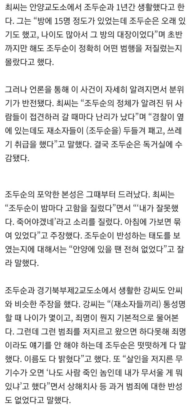 [유머] 감방 동기가 증언한 조두순
