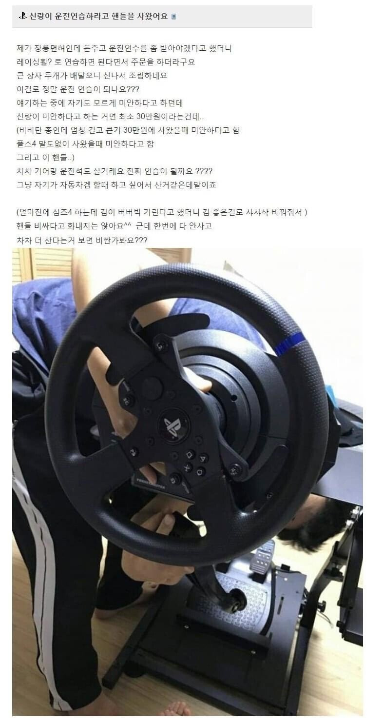어.... 연습이 되긴 하겠지.... 실제 핸들 성능을 탑제한 고가 장비 이니까 .... 30만...? ㅋㅋㅋㅋㅋ
