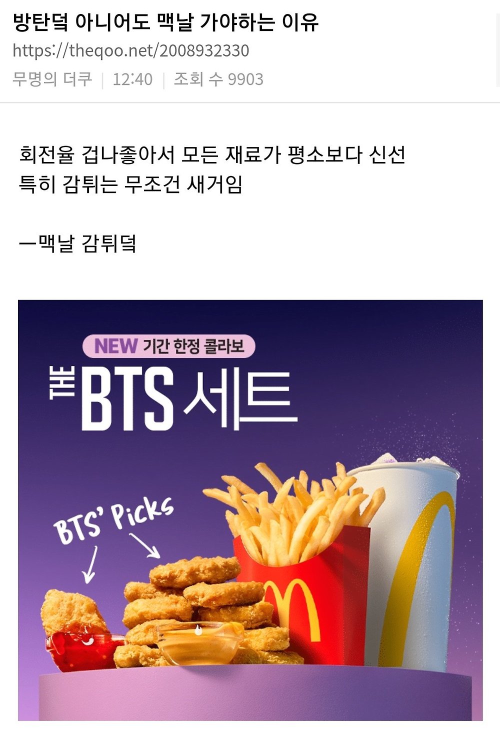 [유머] 방탄팬이 아니라도 요즘 맥도날드 가면 좋은 이유