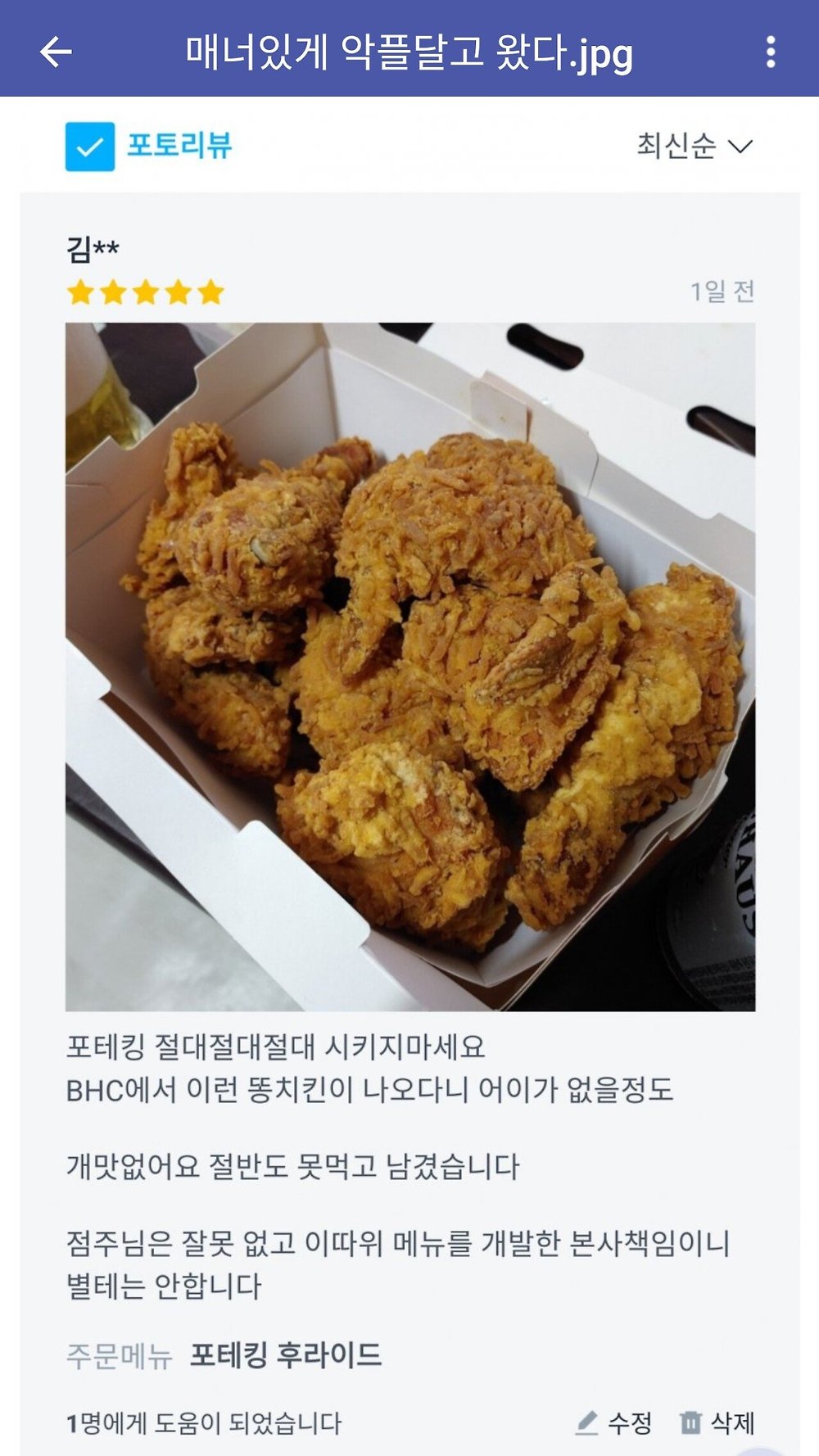 [유머] 갑질애매... 배민 매너 악플남
