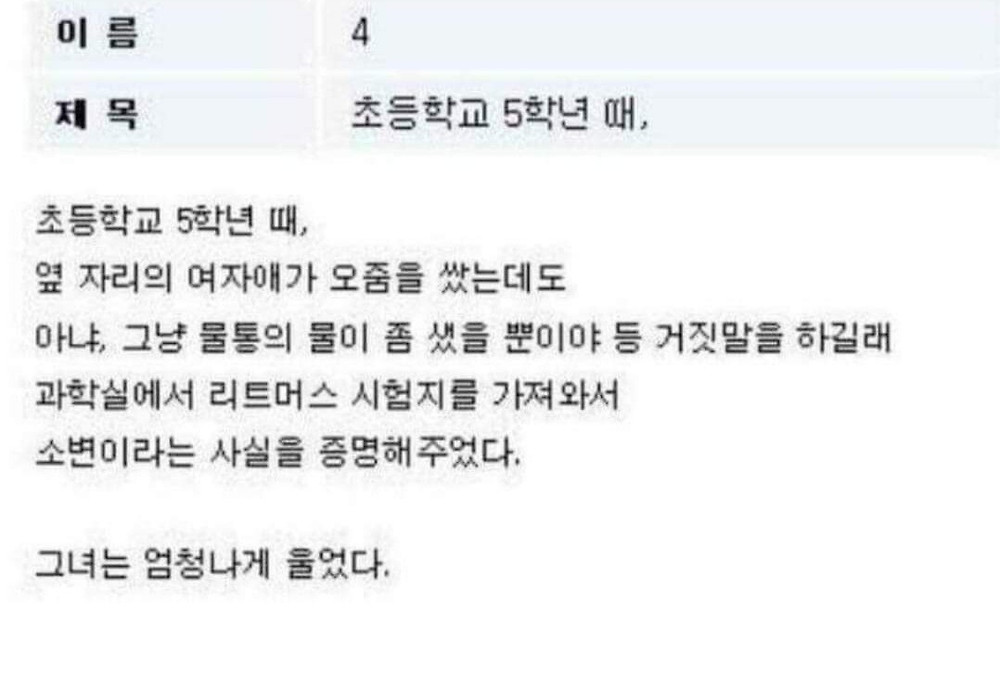 [유머] 초등학교 5학년때 다른 학생을 울린 나쁜사람