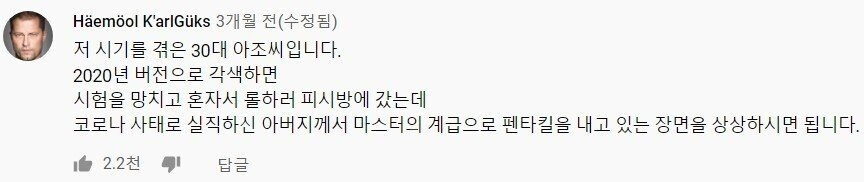 [유머] 한스밴드 오락실 유튜브 영상에 달린 댓글