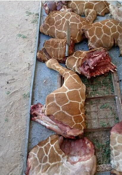 그래서 아프리카에 가보면 기린 고기를 취급하는 도축장도 있는데, 동물 보호 단체에서는 기린의 도축을 강력하게 반대하고 있다고 한다.