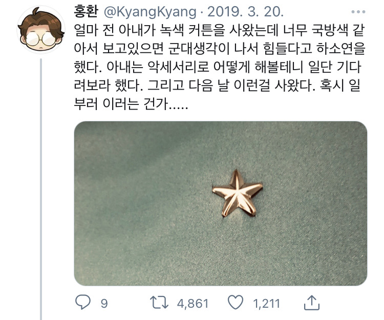 [유머] 아내가 국방색 커튼을 사왔다