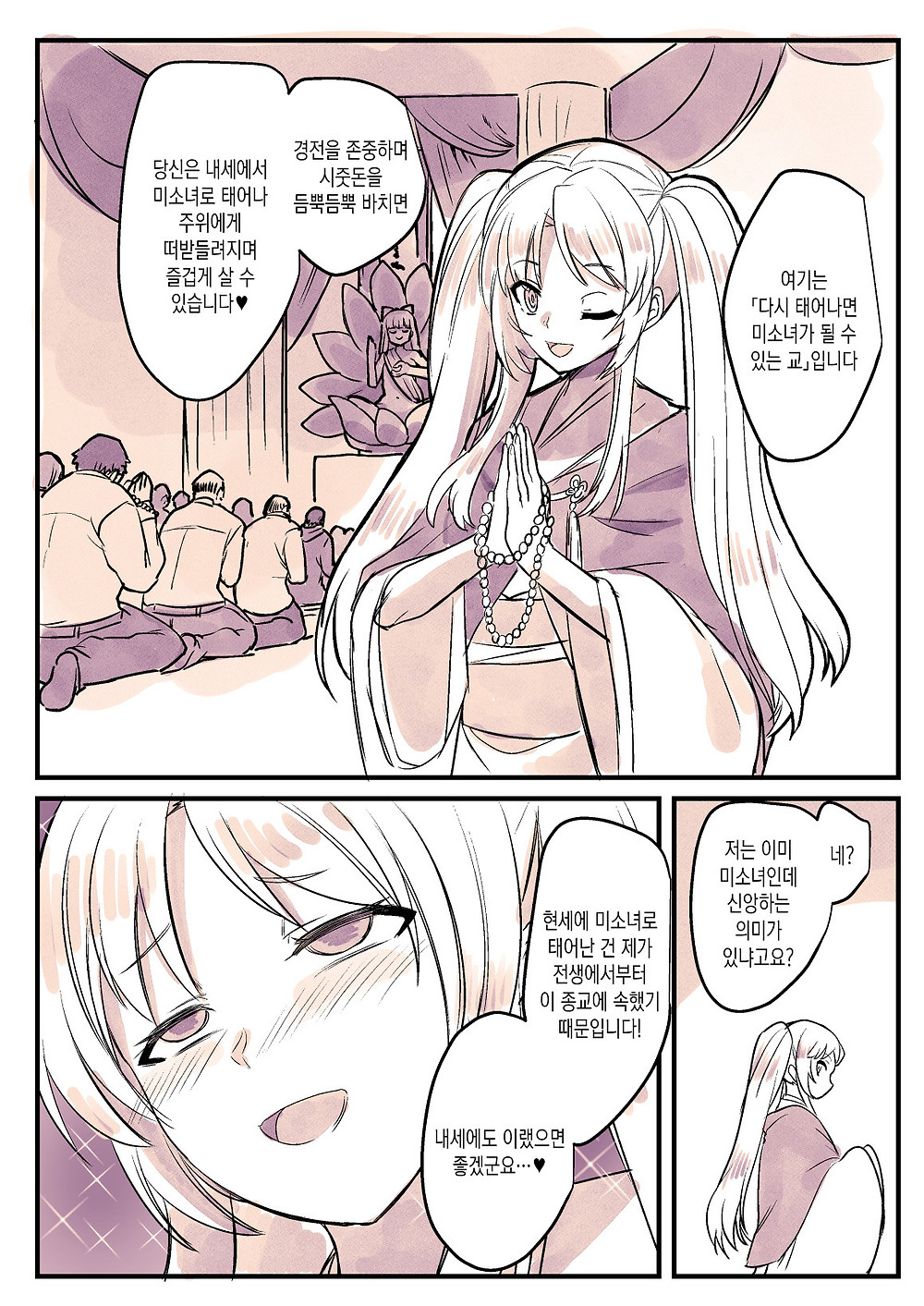 [유머] 믿으면 다음 생에 미소녀가 되는 종교