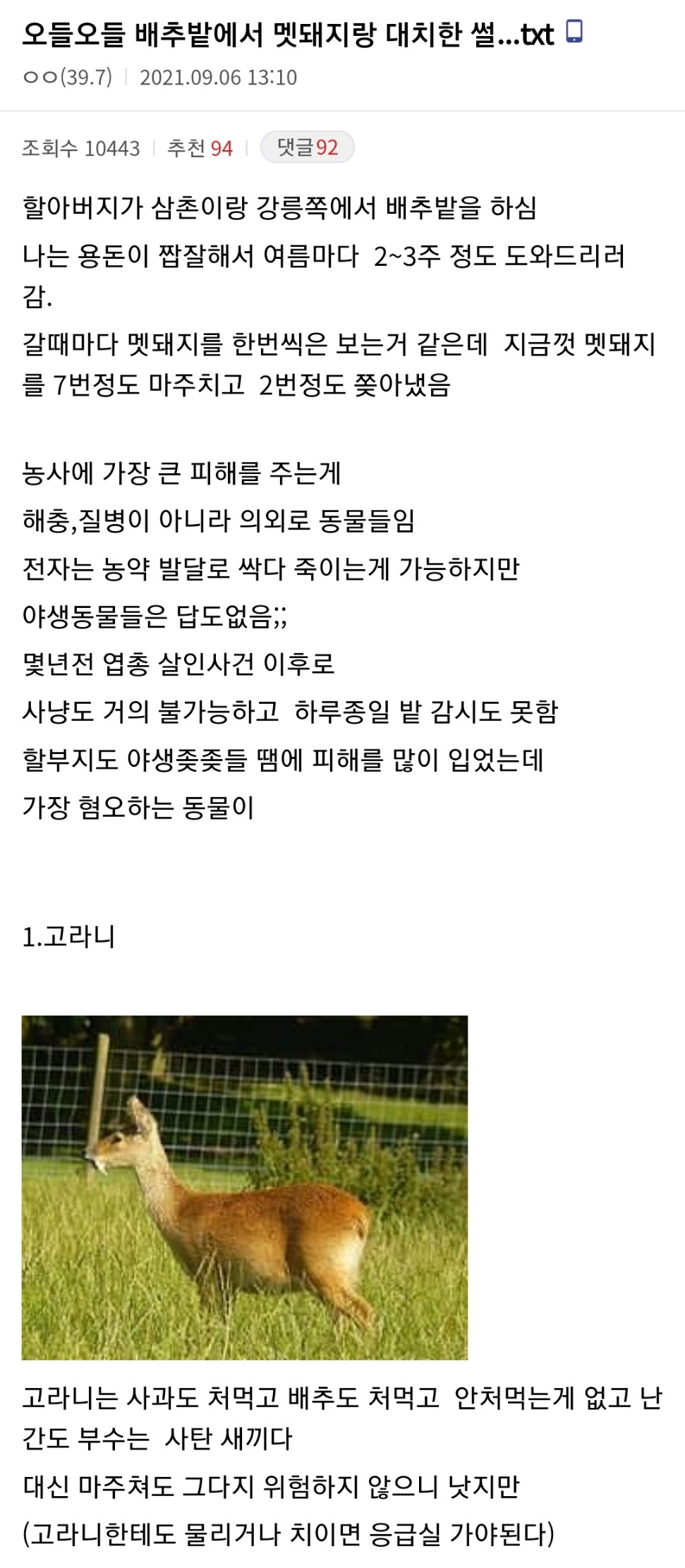 [유머] 오들오들 멧돼지와 대치한 디시인