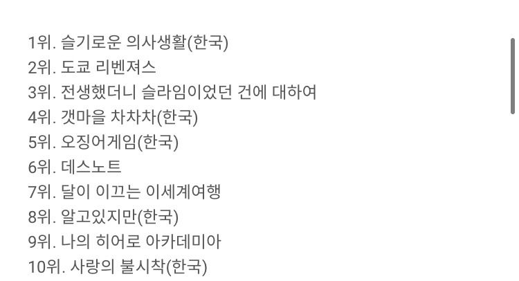 [유머] 왜국 넷플릭스 시청 순위