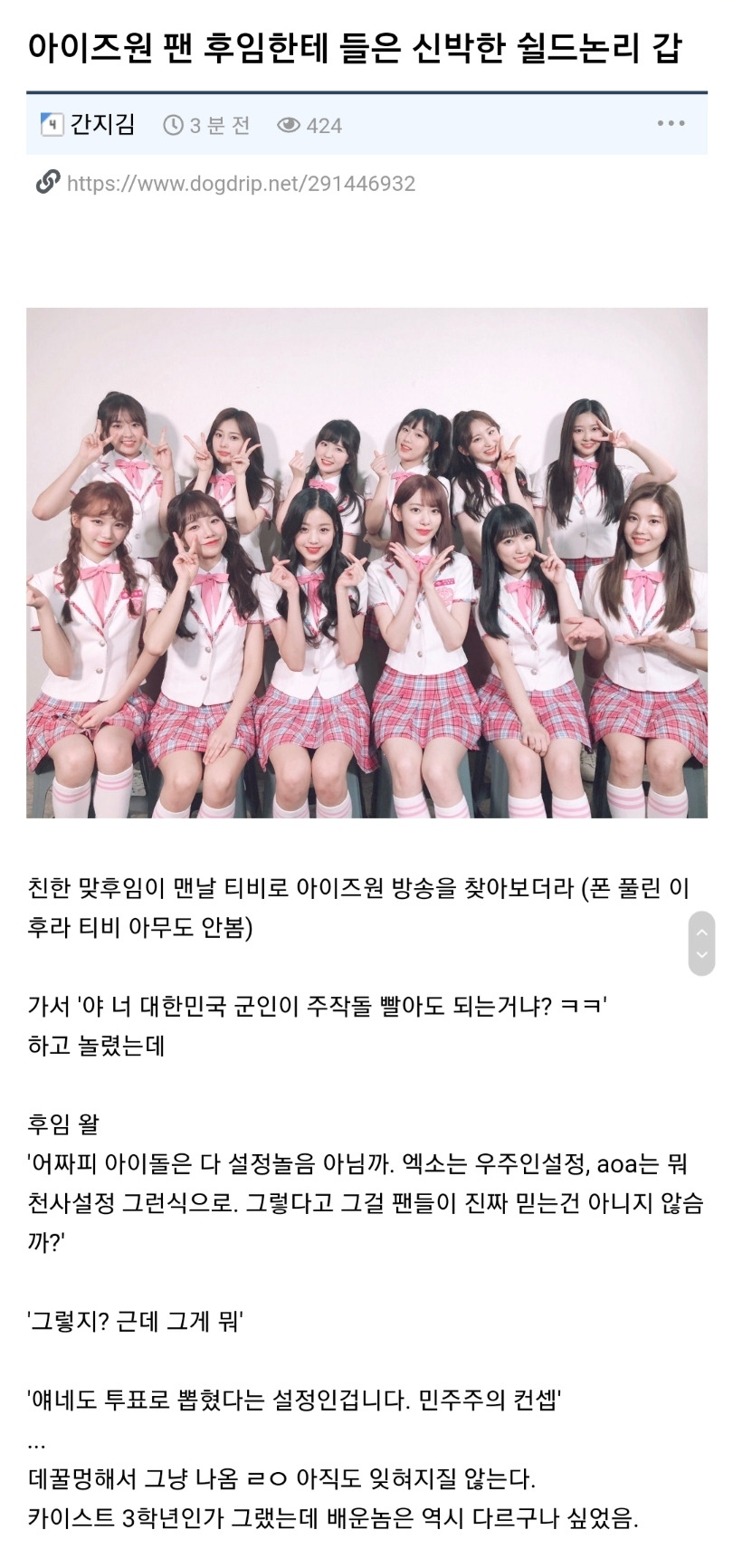 [유머] 한 아이즈원 팬의 신박한 논리