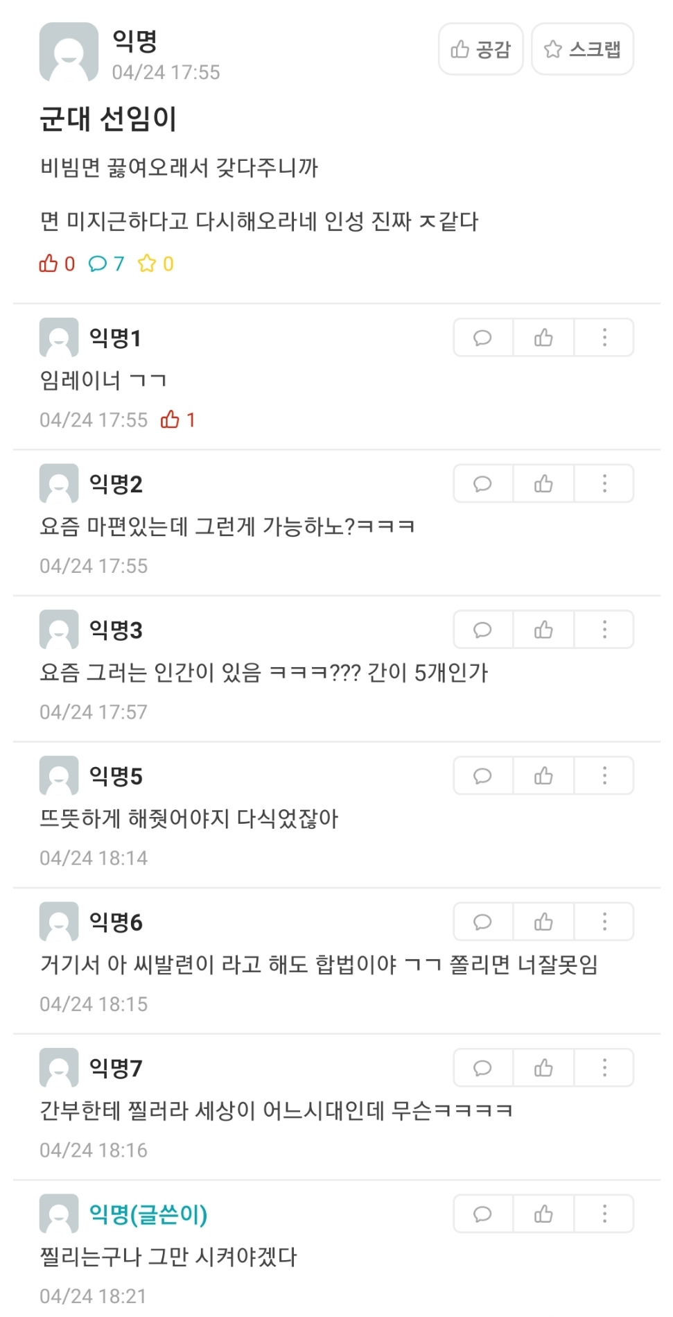 [유머] 군대 선임이 비빔면 미지근하다고 다시 해오래.eta
