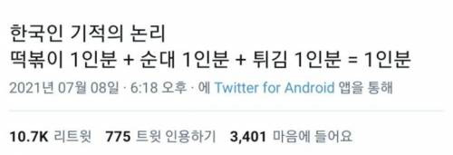 떡순튀 1인분이 되니 맞는말이다.