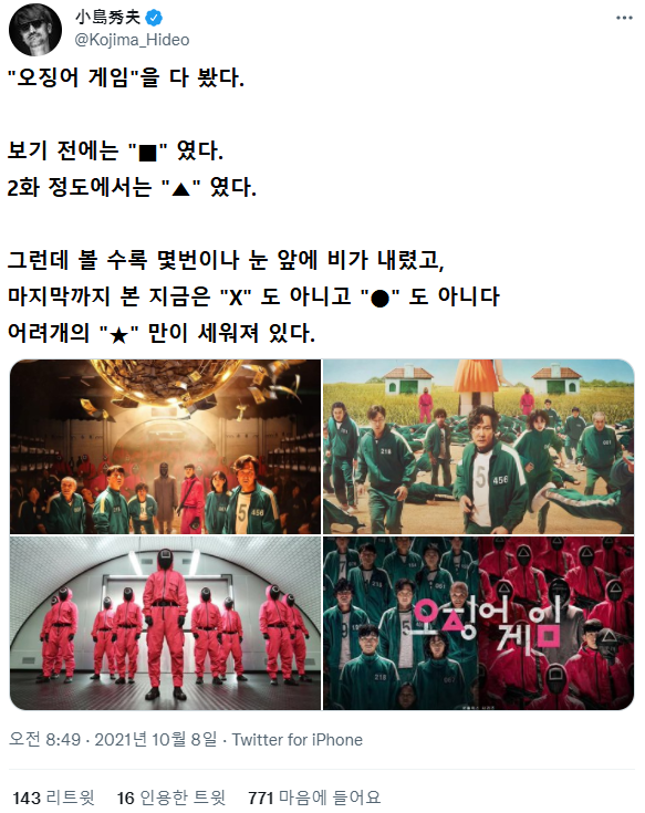 [유머] 코지마 히데오의 오징어 게임 감상평