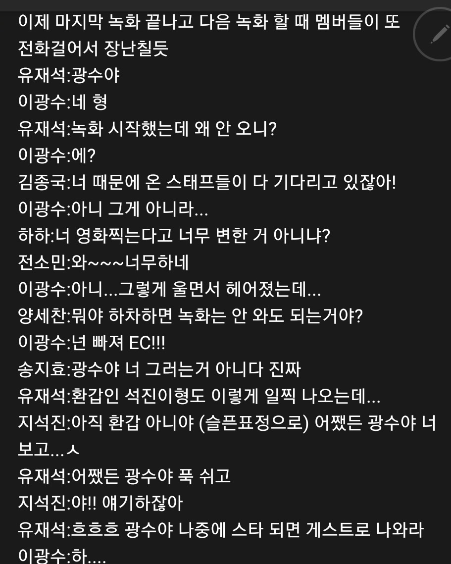 [유머] 런닝맨) 광수 하차 후 다음편 오프닝 대본 유출