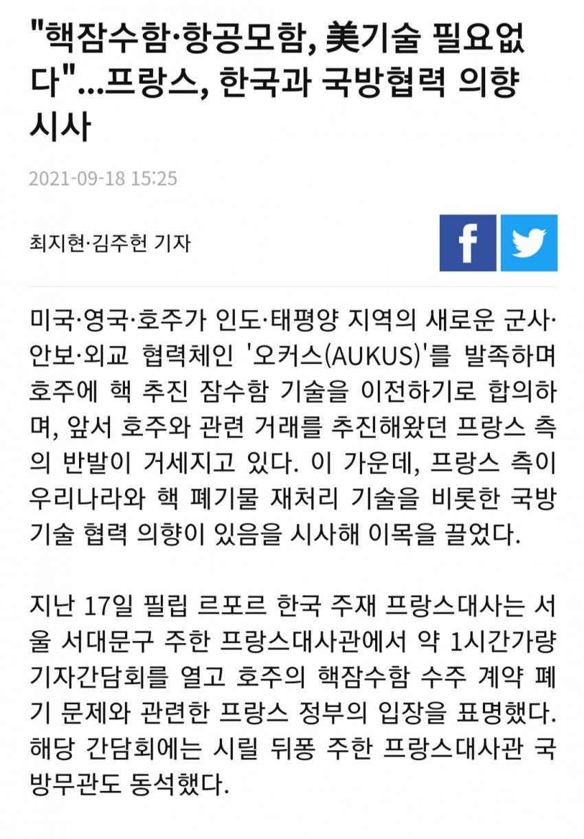 [유머] 핵잠수함·항공모함, 美기술 필요없다"...프랑스, 한국과 국방협력 의향 시사