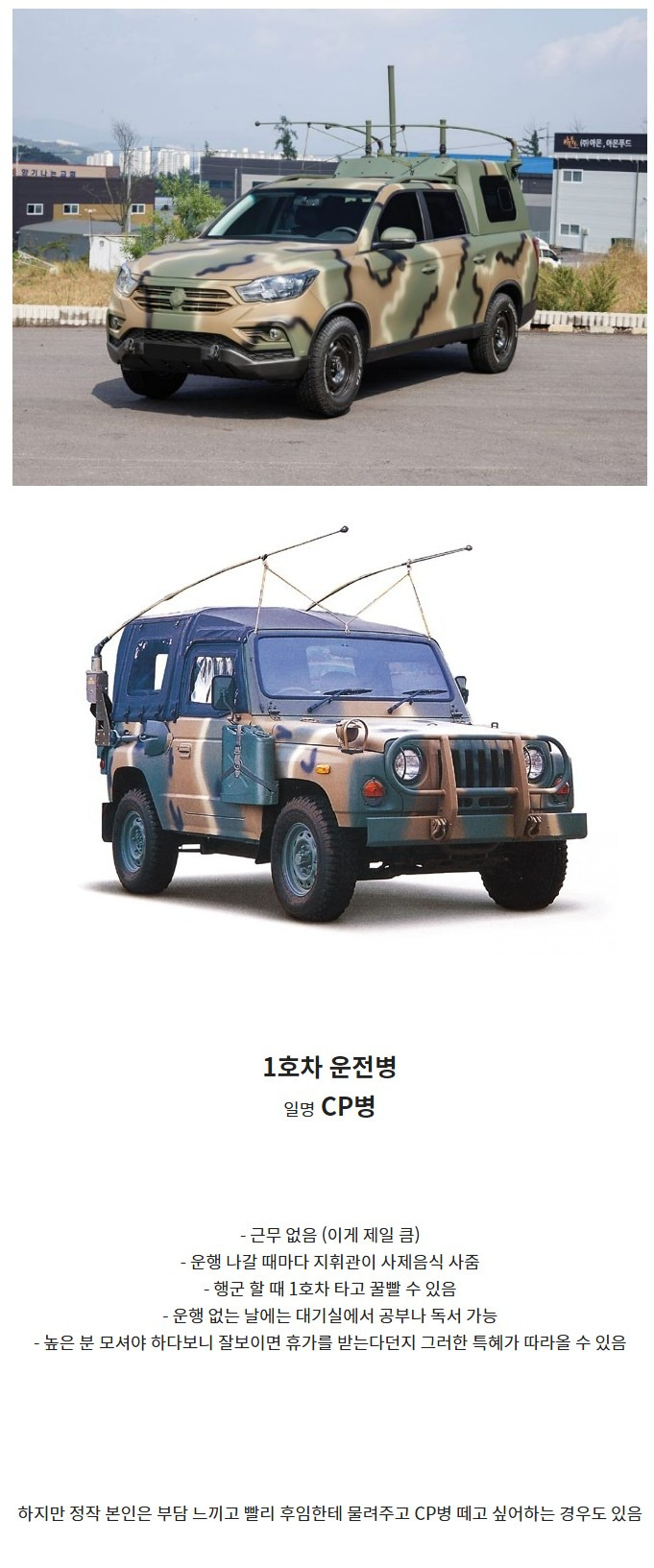 근무없는대신 시도때도없이 야근하고 일반병들이 할리가 없는 온갖 부조리를 버텨야하지 사모님들 데려다주고 뭐 이런걸 다 저런애들이 하는거임