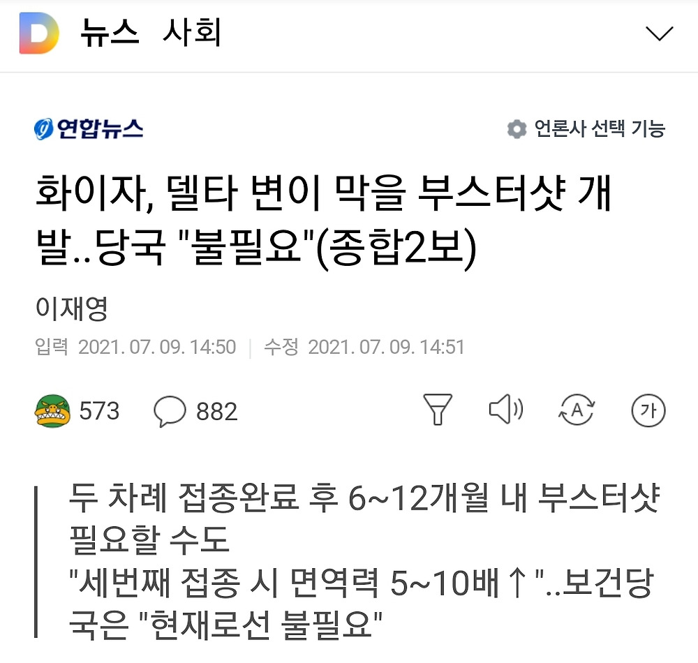 [유머] 화이자, 델타 변이 막을 부스터샷 개발..당국