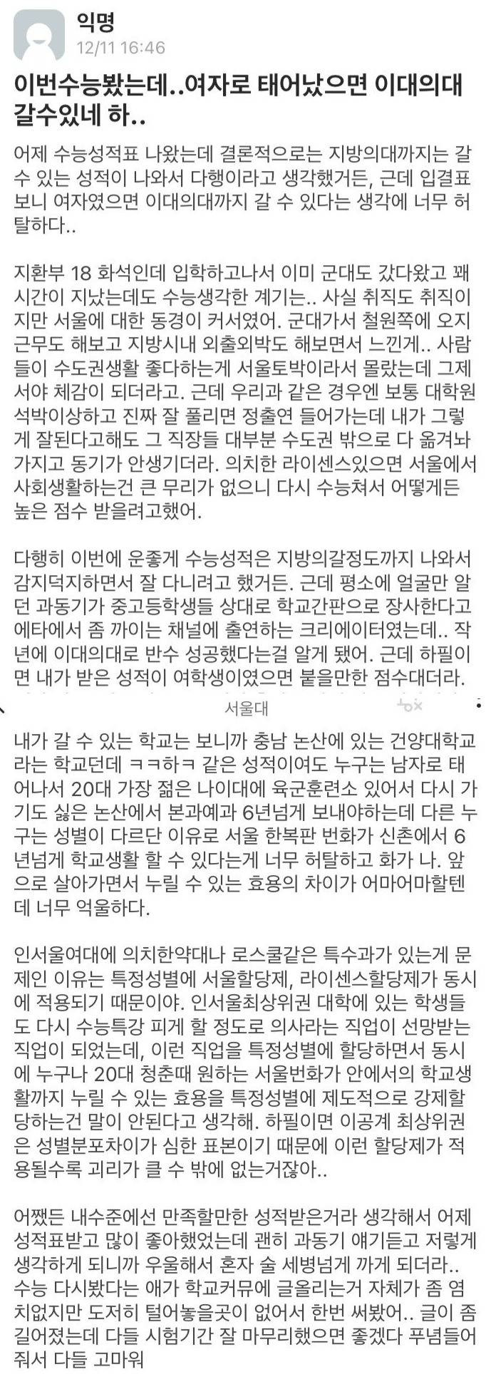 [유머] 서울대생이 여대 의대에 좌절하는 이유