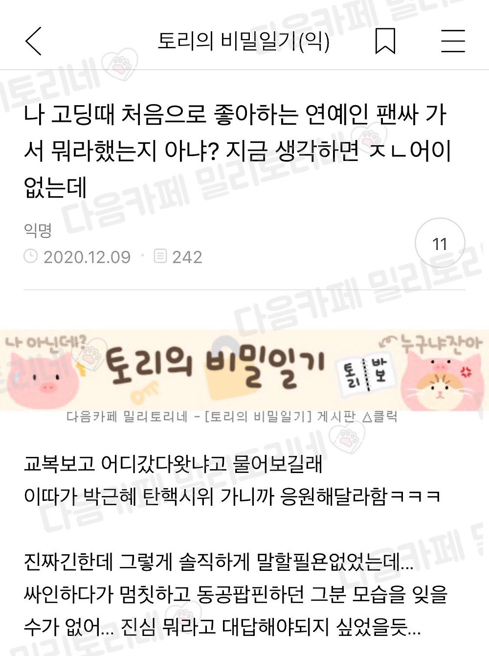 [유머] 고딩때 좋아하는 연예인 교복 입고 팬싸갔던 분