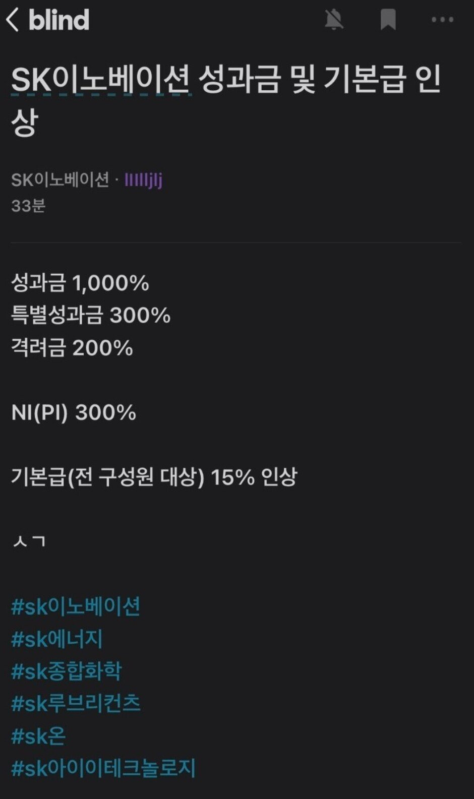 [유머] Blind) 대박난 sk이노베이션 성과급, 기본급