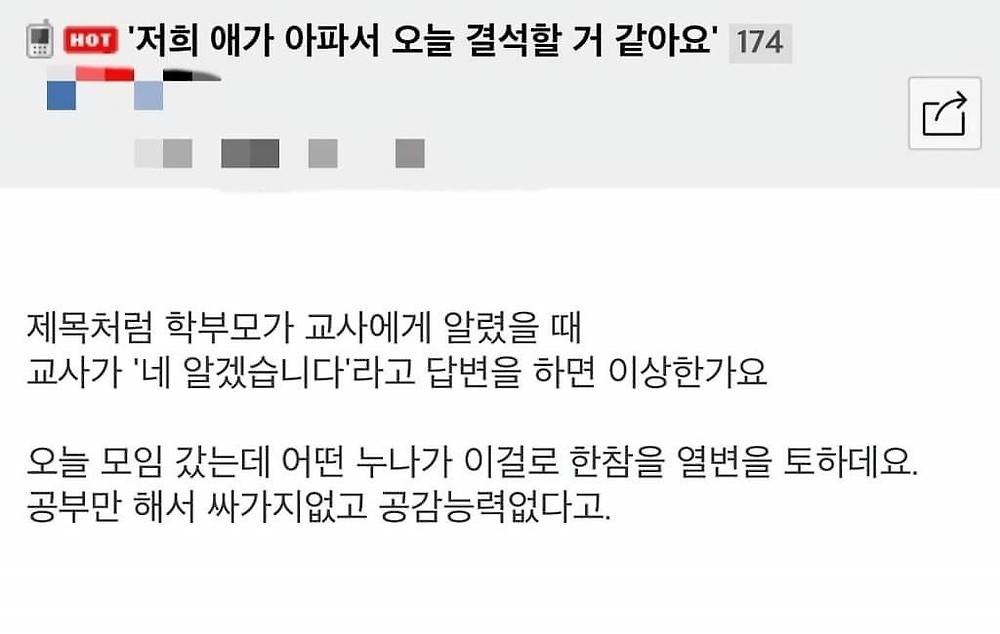 [유머] 저희 애가 아파서 오늘 결석할 거 같아요