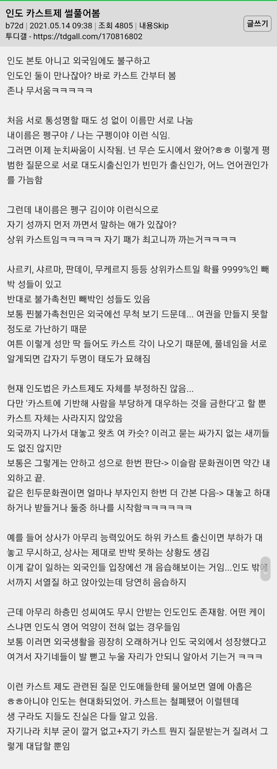 [유머] 인도의 카스트 제도 썰