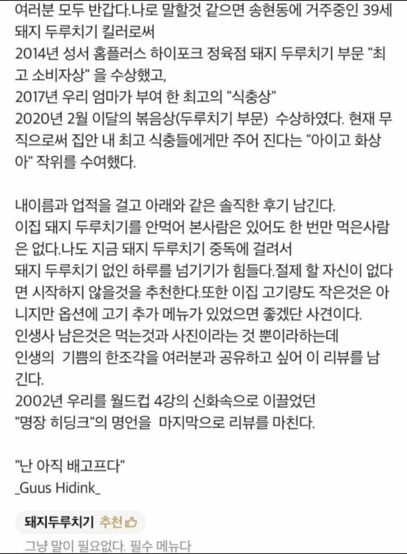 [유머] 두루치기가 너무 맛있었던 배민 리뷰어