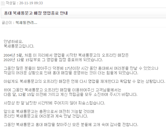 [유머] 홍대 북새통문고 매장 영업종료