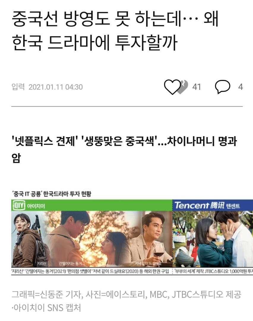 [유머] 중국 기업이 한국 드라마에 투자하는 이유