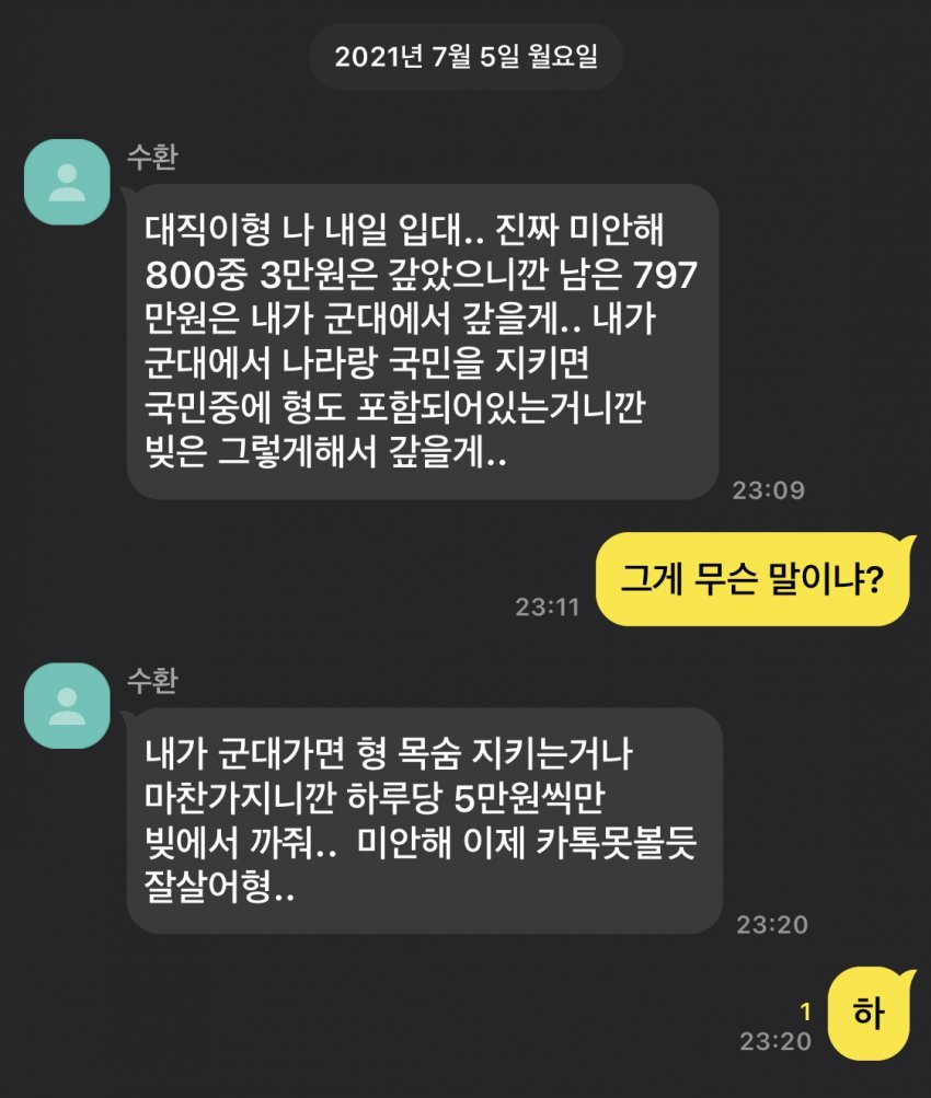 800만원 빌려서 3만원 갚은게 더 웃기네 ㅋㅋ 이래서 돈은 빌리지도 빌려주지도 않는다.