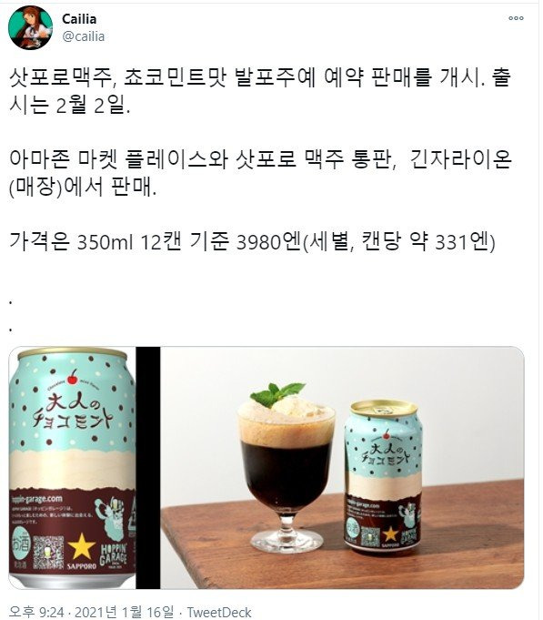 [유머] 민트초코맛 술 등장