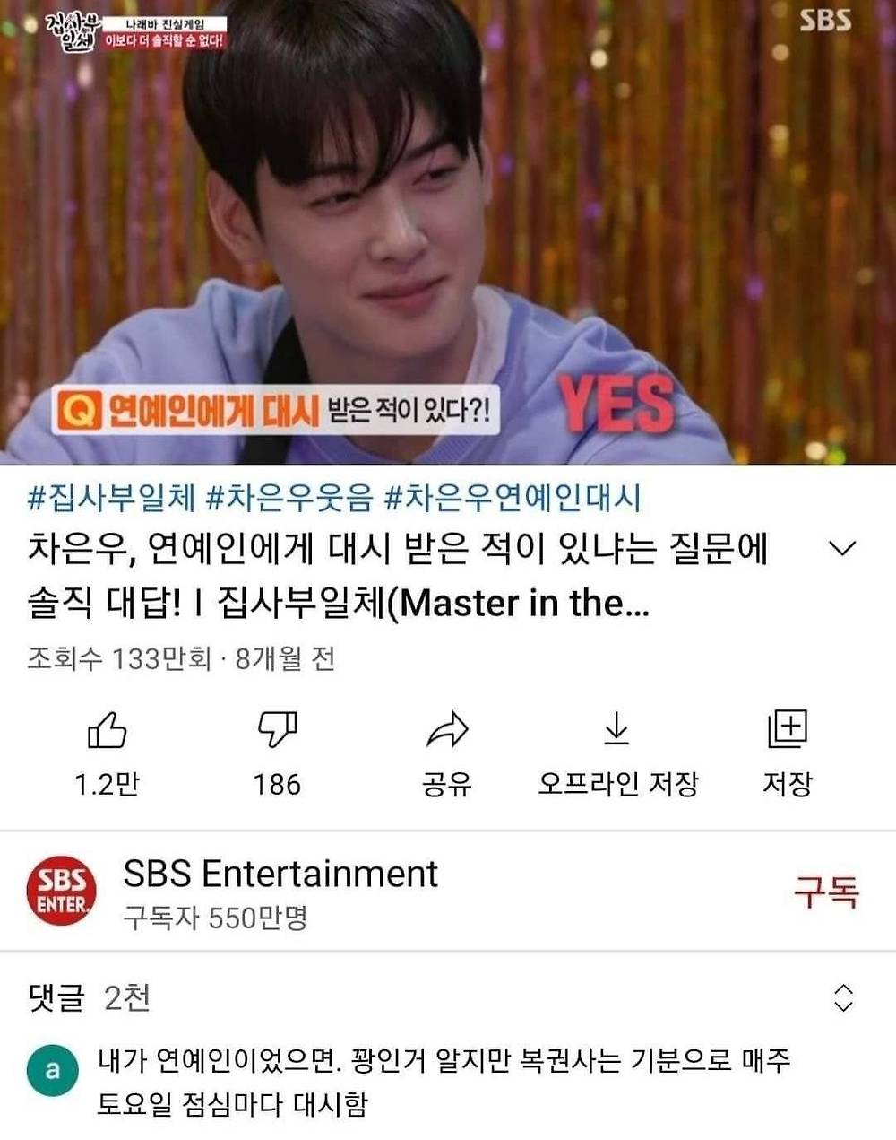 [유머] 차은우씨, 연예인에게 대시받아본 적 있으신가요?