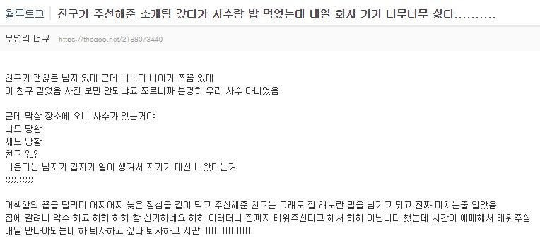 [유머] 소개팅 나갔다가 퇴사하고 싶어진 이유