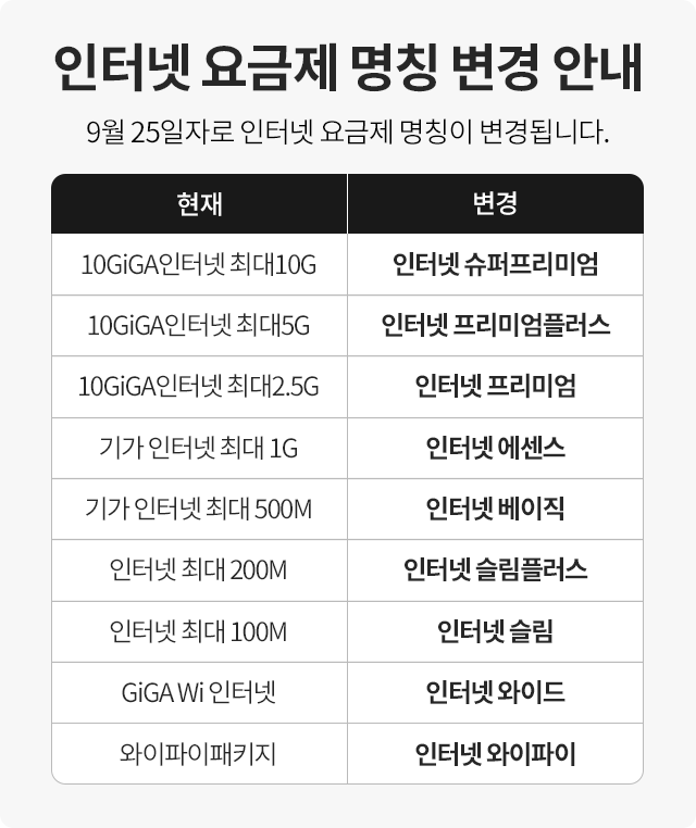 [유머] KT 인터넷 요금제 명칭 변경