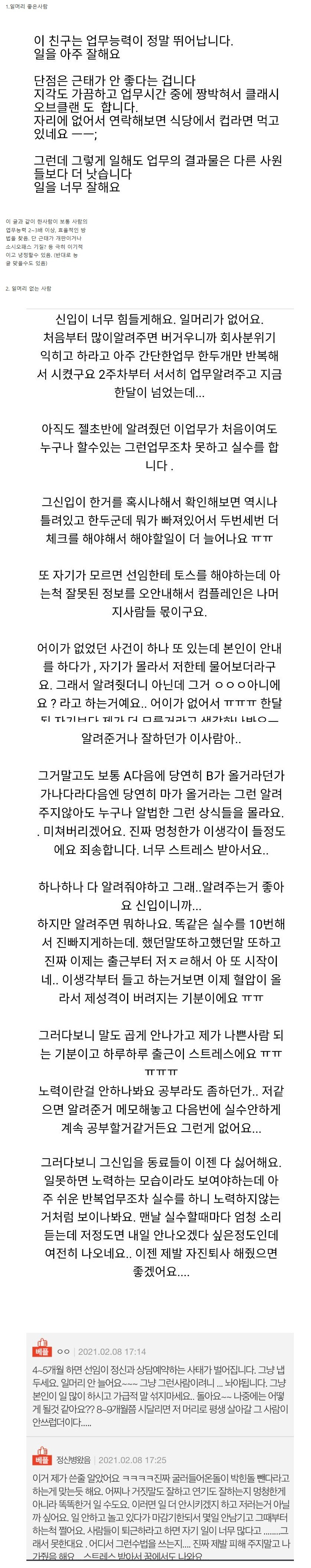 일 잘하는 애들은 뭔짓을해도 사랑받고 인기많음 ㅋㅋ 근데 일머리없다? 씨발 그냥 병신임