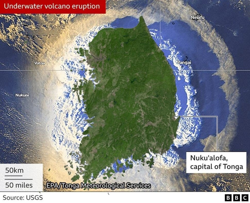 [유머] 통가 화산폭발 분연주 크기가 남한만하네요