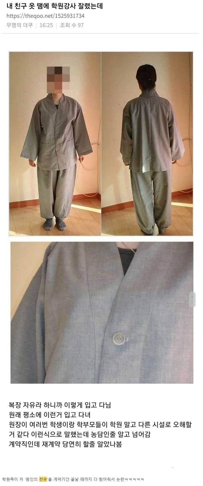 [유머] 옷 때문에 학원 잘린 선생님