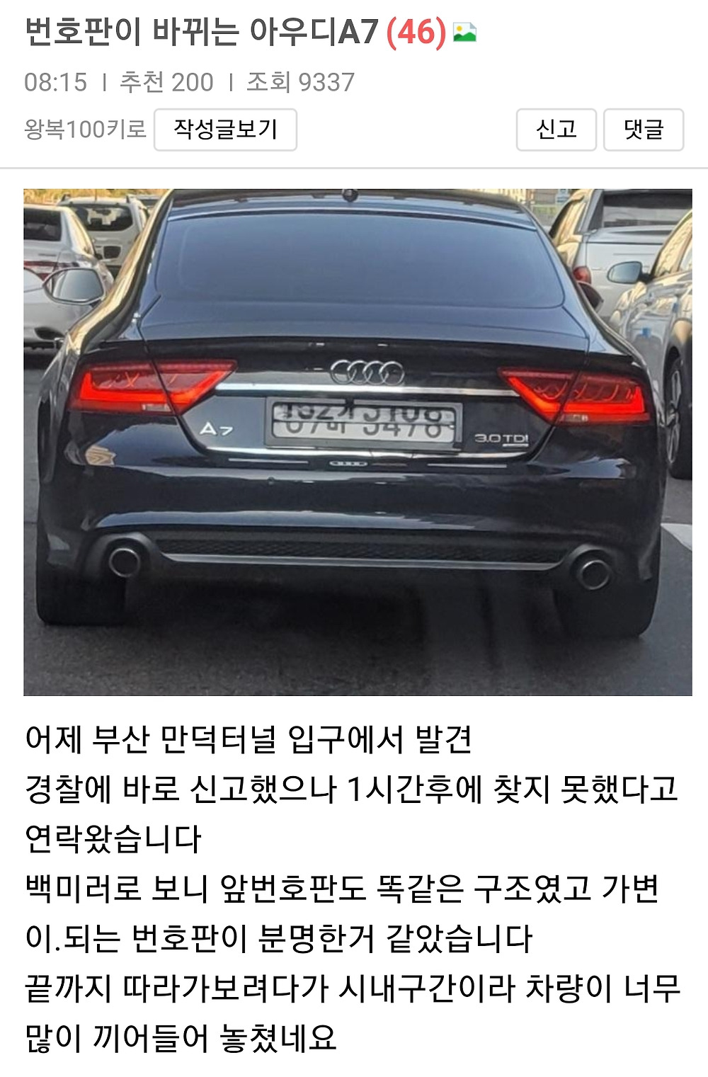 [유머] 실시간으로 번호판이 바뀌는 아우디 A7
