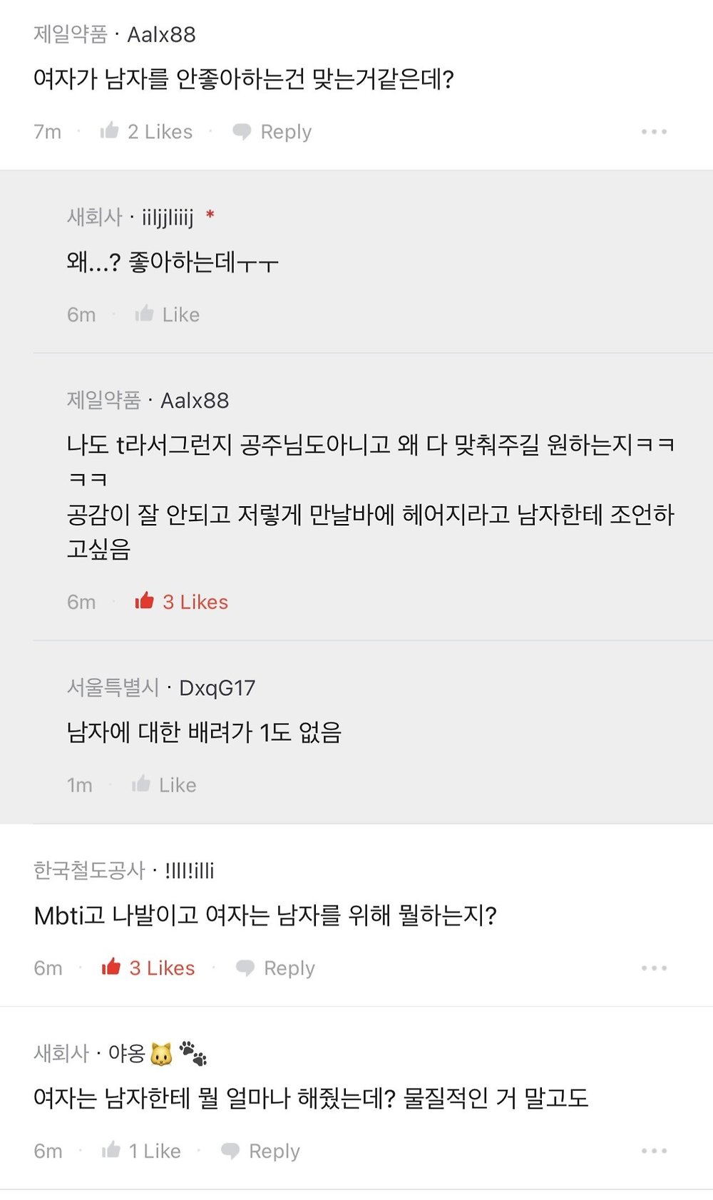 20대초반 년들이 딱 저 마인든데 애미뒤진년들ㅋ ㅋ 나라가 진짜 씨발이상함 어디서 여자가씨발 말대꾸
