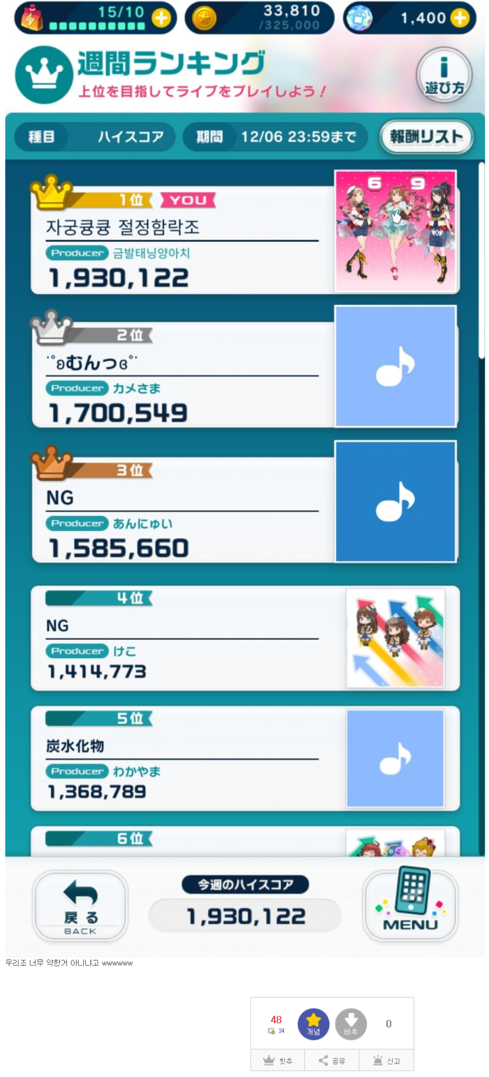 [유머] 일본 폰게임 랭킹 1위 한국인 아이디