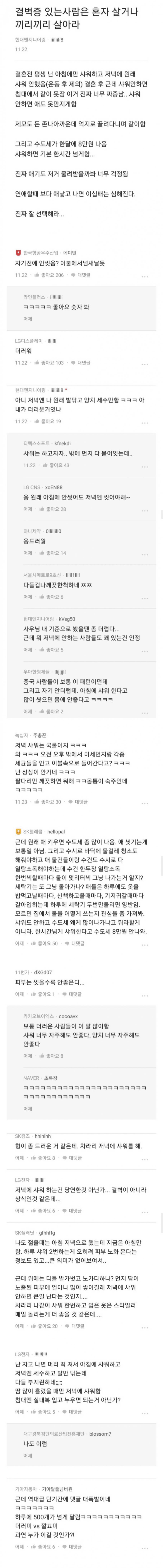 밤새 자면서 땀흘리고 샤워안하고 출근한다고? 아침에 씻는사람은 다른사람시선생각하는과고 저녁에 씻는사람은 개인위생을 더 신경쓰는 타입인가봄.