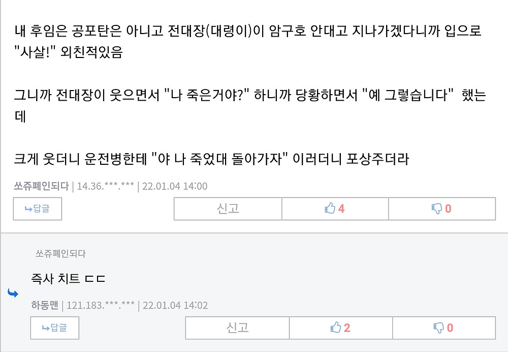 [유머] 대령한테 즉사 치트 쓴 이등병