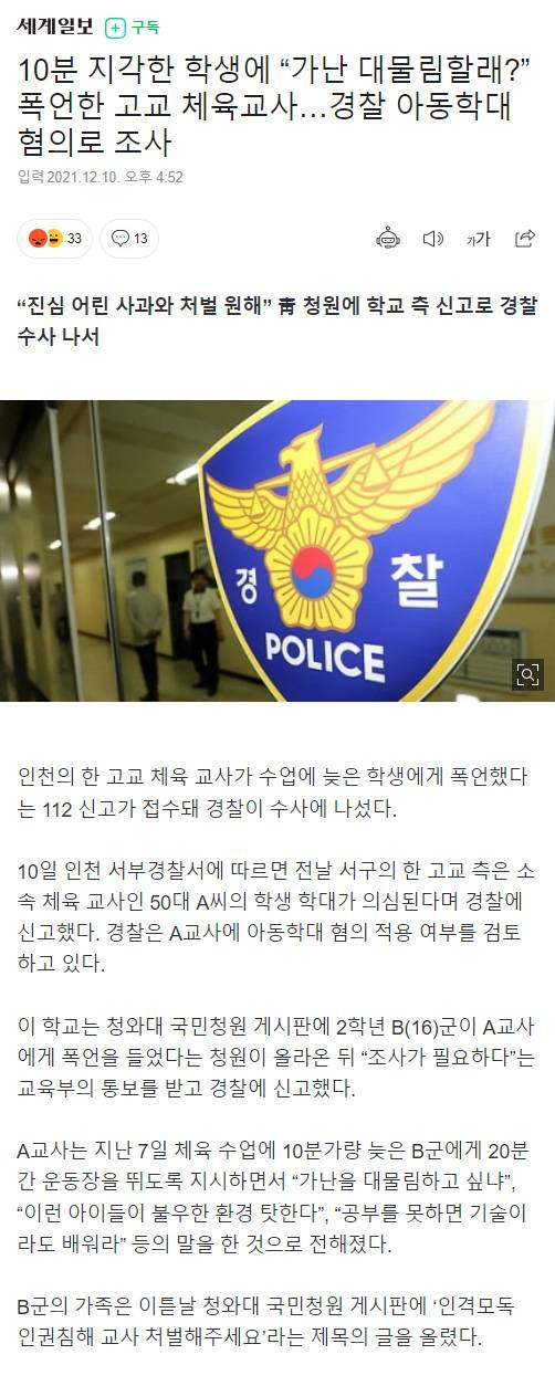 [유머] 10분 지각한 학생이 들은 폭언
