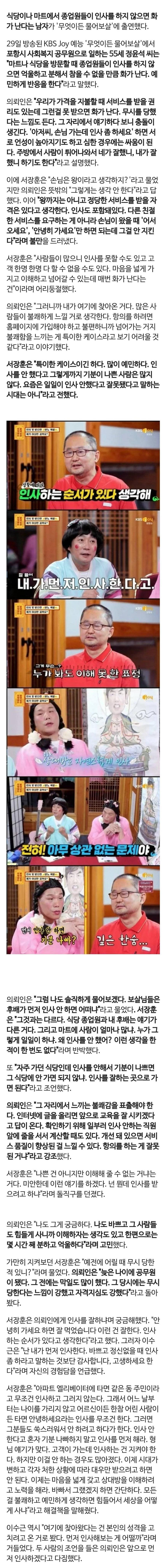 서비스업에서 인사까지 서비스라 생각하는건 그렇다치는데 그거 안해줬다고 시비터는건 전형적인 꼰대의 마인드가 아닌가. 고치겠다고 말했으니, 자존심보단 자존감이 높은 사람이 되시길...