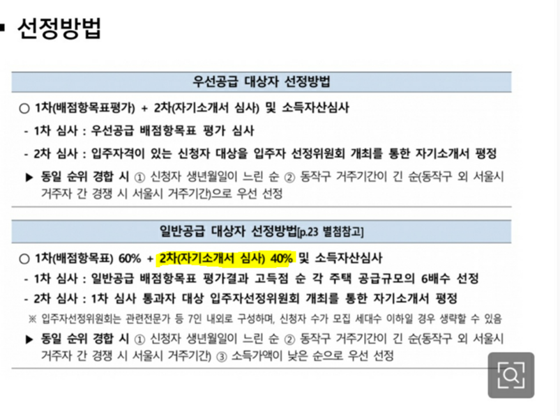 올라왔던 청년주택 공고 자기소개서 배점 40% 연전연패하던 문과....드디어 1승?