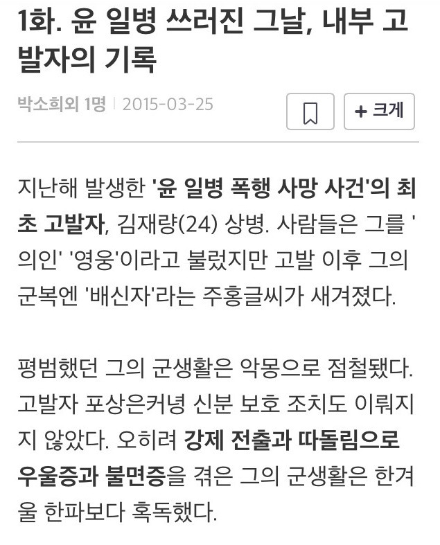 [유머] 2014 윤일병 가혹행위 사건을 최초로 세상에 알린 장본인
