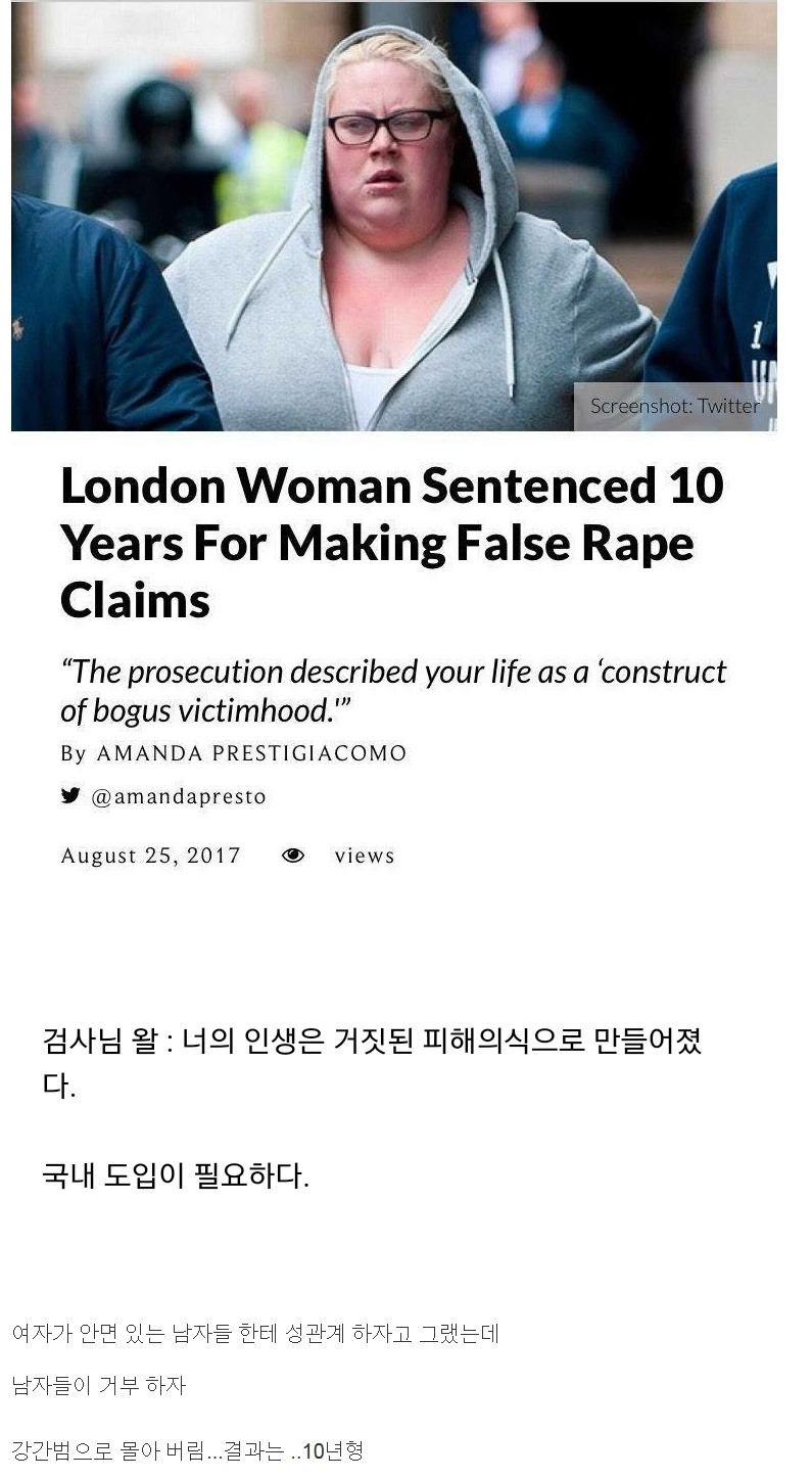 [유머] 허위 강간 신고로 10년 형 받은 영국 여자