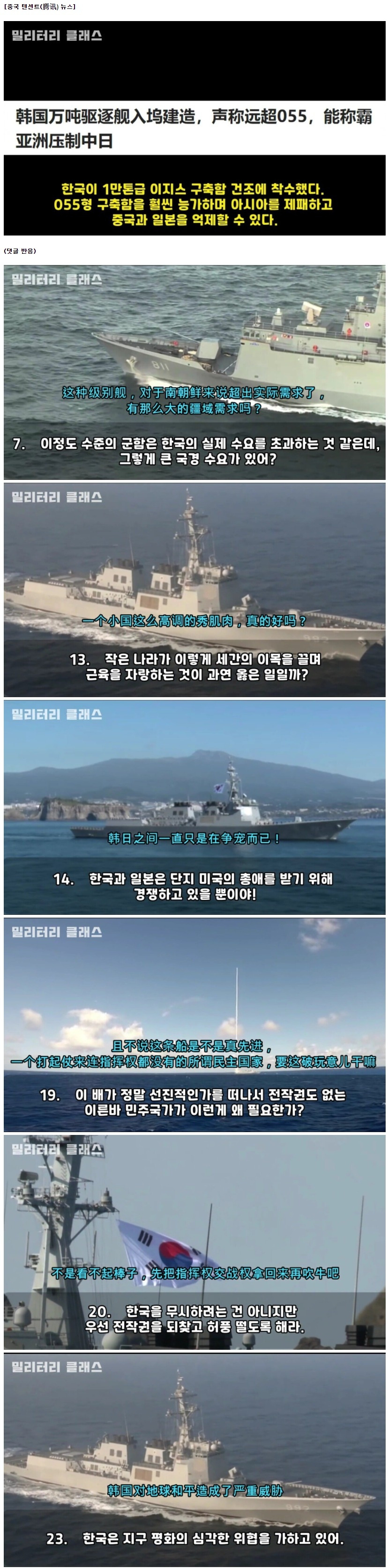 [유머] 한국의 신형 군함 건조가 못마땅
