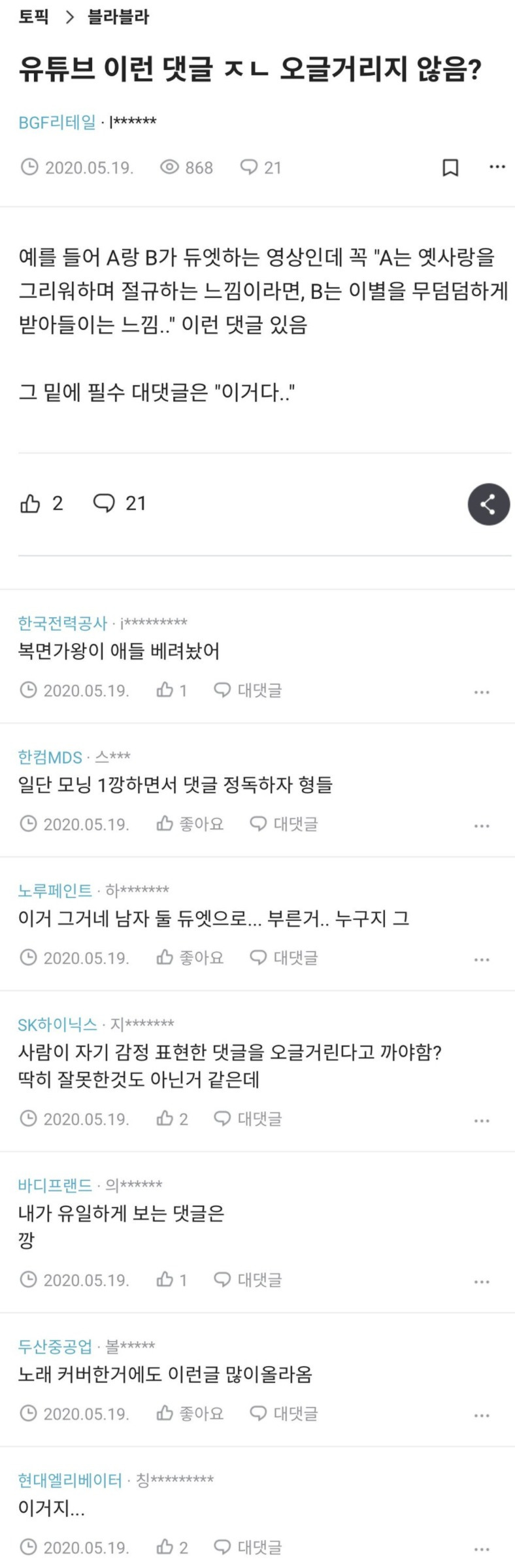 [유머] 오글거리는 댓글