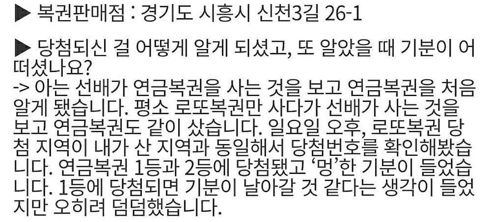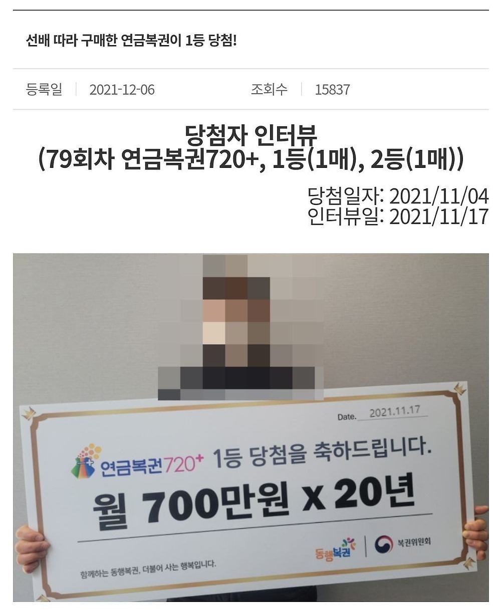 [유머] 연금복권 1등 당첨자 소감 한마디